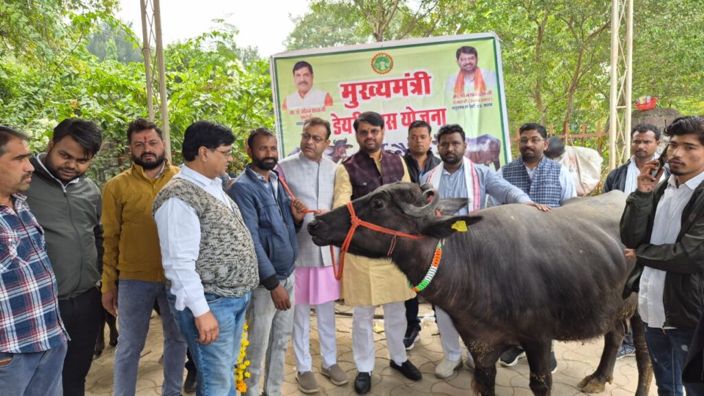 प्रदेश के ग्रामीण युवाओं को आत्मनिर्भर बनाने तथा दुग्ध उत्पादन को दोगुना करने के उद्देश्य से पशुपालन एवं डेयरी विभाग द्वारा मुख्यमंत्री डेयरी प्लस योजना प्रभावी रूप से संचालित की जा रही है। इसी क्रम में दमोह जिले में रोजगार सृजन एवं दुग्ध उत्पादन वृद्धि की दिशा में एक महत्वपूर्ण कदम उठाते हुए जिले के 9 चयनित हितग्राहियों को 18 मुर्रा भैंसें पशुपालन एवं डेयरी विभाग राज्यमंत्री लखन पटेल के निर्देशन में भाजपा जिलाध्यक्ष श्याम शिवहरे एवं लोकेन्द्र पटेल द्वारा वितरित की गई।योजना के तहत अगले चरण में मुर्रा भैंस क्रय हेतु जिले के अन्य 9 हितग्राहियों का दल पशु चिकित्सा अधिकारी के साथ रोहतक (हरियाणा) के लिए रवाना हो चुका है, जहाँ वे उच्च दुग्ध उत्पादन वाली भैंसों का प्रत्यक्ष निरीक्षण कर चयन करेंगे। शेष चयनित हितग्राहियों को भी अगले सप्ताह के अंत तक रोहतक भेजा जाएगा।