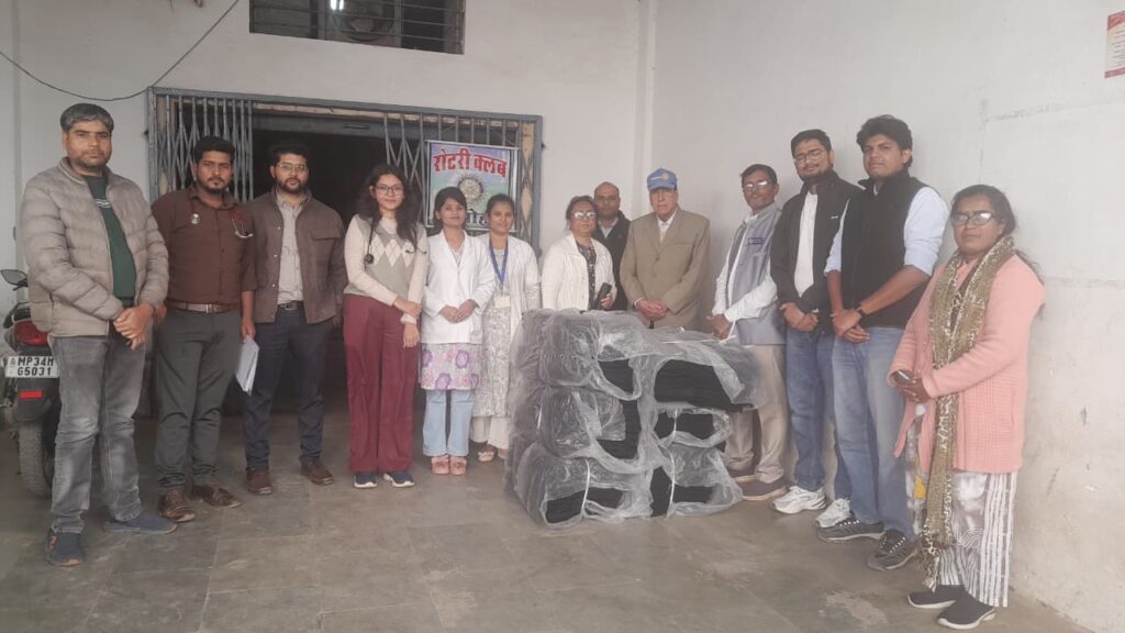 रोटरी क्लब दमोह द्वारा स्वास्थ्य विभाग को दिये गये 60 गर्म कंबल