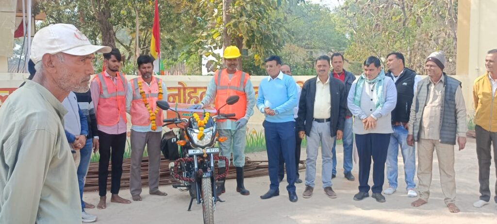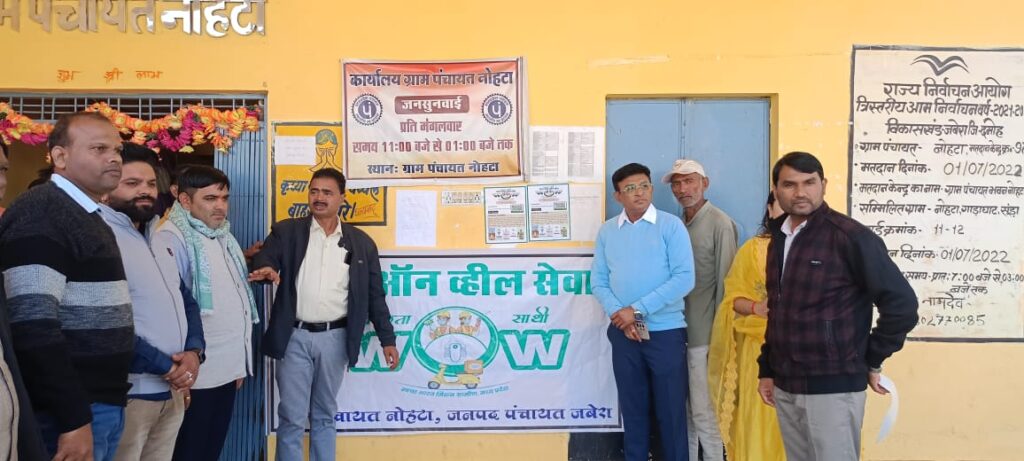 शासन के निर्देशानुसार स्वच्छ भारत मिशन ग्रामीण योजनान्तर्गत खुले में शौच मुक्त की गुणवत्ता एवं निरंतरता को बनाये रखने के लिए घरेलू एवं संस्थागत शौचालयों की नियमित सफाई हेतु वॉश ऑन व्हील सेवा का शुभारंभ ग्राम पंचायत नोहटा जनपद पंचायत जबेरा में राज्य मंत्री स्वतंत्र प्रभार संस्कृति, पर्यटन, धार्मिक न्यास एवं धर्मस्व विभाग धर्मेन्द्र सिंह लोधी द्वारा स्वच्छता साथियों को फूलमाला पहनाकर स्वच्छता किट प्रदाय कर किया गया ।