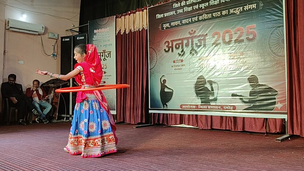 जिले की छुपी हुई उन सांस्कृतिक प्रतिभाओं को मंच प्रदान करने के उद्देश्य से एक अभिनव पहल जिला प्रशासन द्वारा की गई। इस पहल के अंतर्गत ‘अनुगूँज 2025’ नाम से जिले का पहला सांस्कृतिक कार्यक्रम स्थानीय पीजी महाविद्यालय दमोह में आयोजित किया गया। सांकृतिक कार्यक्रम में जिले की विभिन्न संस्थाओं के छात्र-छात्राओं के भाग लिया और एक से बढ़कर एक प्रस्तुतियां दी, जिसे दर्शकों ने इन प्रतिभाओं की सराहना की और शुभकामनायें दी। कार्यक्रम में कलेक्टर सुधीर कुमार कोचर, जिला पंचायत उपाध्यक्ष मंजू धर्मेन्द्र कटारे, संगीता श्रीधर, सीईओ जिला पंचायत प्रवीण फुलपगारे, जिला शिक्षा अधिकारी एसके नेमा, राजीव अयाची, हरीश पटैल सहित बड़ी संख्या में आमजन, दर्शकगण मौजूद थे।