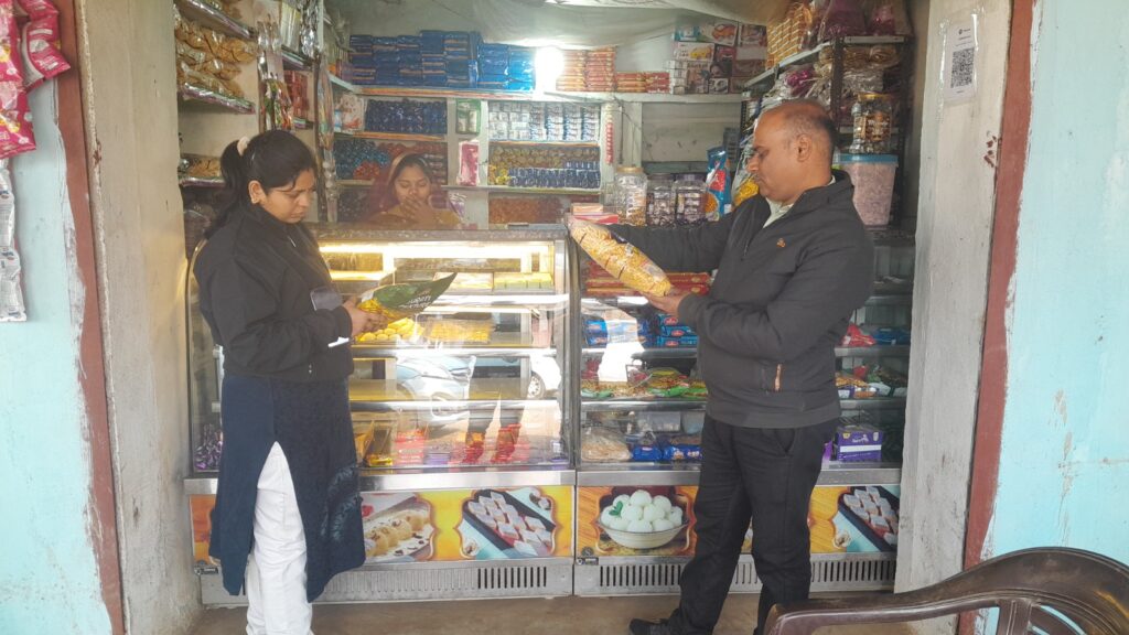 खाद्य सुरक्षा प्रशासन विभाग द्वारा ग्राम झलौन, तेंदूखेड़ा स्थित किराना दुकानों,होटल एवं नाश्ता जलपान गृह का किया गया औचक निरीक्षण
