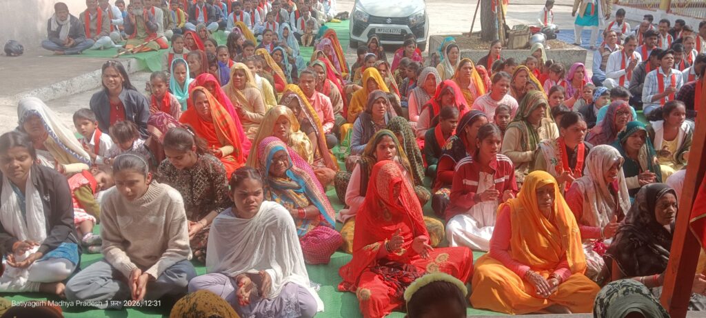 बटियागढ हरसिद्धि मंदिर प्रांगण घनश्यामपुरा में भगवती मानव कल्याण संगठन एवं पंचज्योति शक्ति तीर्थ सिद्धाश्रम धाम के संयुक्त तत्वावधान में हर माह की भांति इस माह भी माह के प्रथम रविवार को मासिक महाआरती का आयोजन किया गया आयोजन में सर्वसमिति के लोग सम्मिलित रहें आयोजन के उद्देश्य प्रत्येक व्यक्ति को नशा मुक्त मांसाहार मुक्त चरित्रवान चेतनावन जीवन जीने को प्रेरित किया आयोजन का शुभारंभ 12 बजे से प्रीतम सिंह ब्लाक अध्यक्ष द्वारा किया संगठन की विचारधारा बताये हुए भगवती मानव कल्याण संगठन के संभागीय संगठन मंत्री राकेश तिवारी द्वारा बताया गया है कि हर जगह से आवाज उठ रही की सनातन की रक्षा कैसे होगी वहीं दूसरी तरफ जातिभेद छूआछूत जैसी बीमारी समाज की बीच बढ़ती जा रही है ऐसे में सनातन की रक्षा करना संभव नहीं है यदि धर्म की रक्षा संभव है तो जातिभेद छूआछूत हर संगठन व धार्मिक स्थानों से बंद होना चाहिए