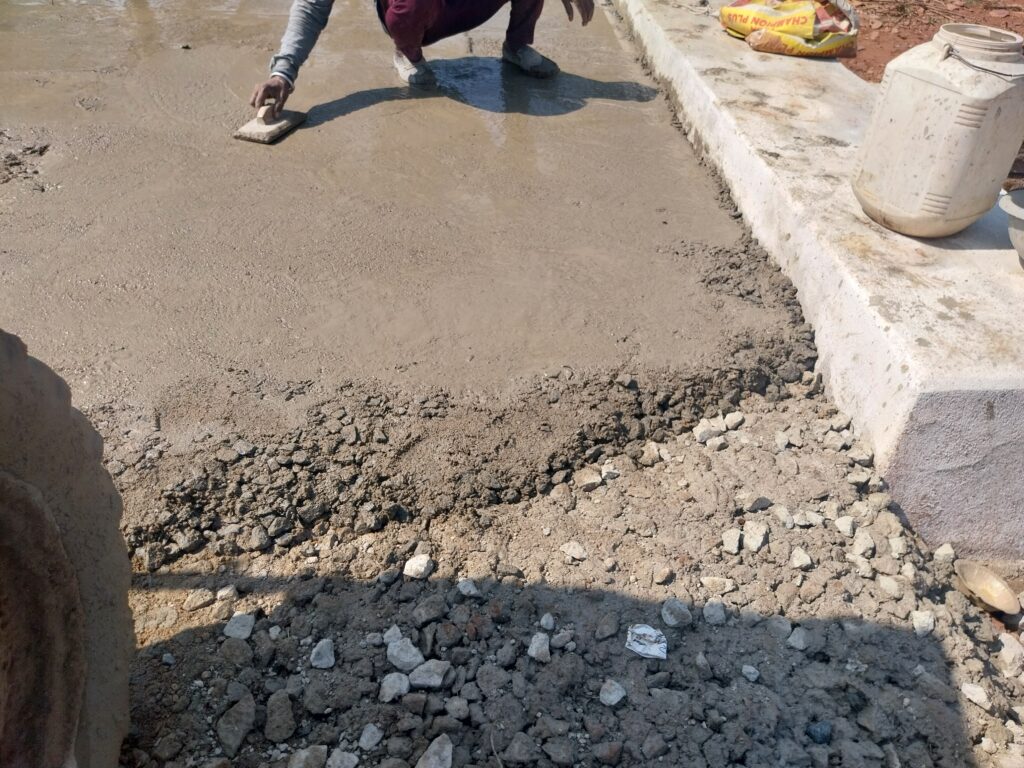 मौके पर लेबर और मिस्त्री अपने हिसाब से सड़क बना रहे थे। सीसी सड़क में गिट्टी के साथ पत्थरों का उपयोग किया जा रहा है, जिससे सड़क की मजबूती पर बड़ा सवाल खड़ा होता है। सीमेंट ना के बराबर मिलाया गया—जहाँ कमी दिखी, वहाँ ऊपर से सीमेंट छिड़क कर खानापूर्ति की गई।
