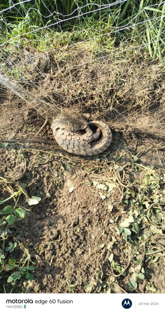 सूचना मिलते ही वन विभाग की टीम तत्काल मौके पर पहुंची और पूरी सावधानी व सतर्कता के साथ रेस्क्यू अभियान शुरू किया। टीम ने धैर्य और अनुभव का परिचय देते हुए जाल में फंसे पैंगोलिन को सुरक्षित बाहर निकाल लिया।