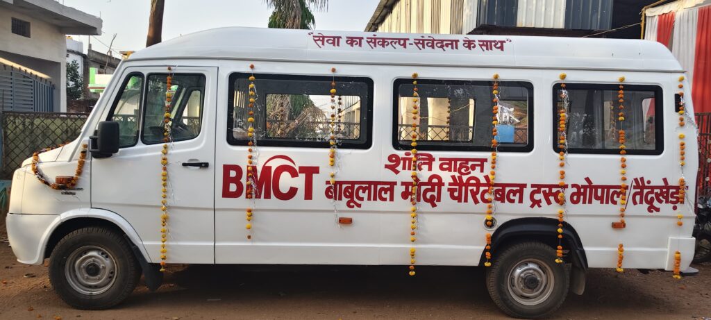 कार्यक्रम के दौरान बाबूलाल मोदी चैरिटेबल ट्रस्ट, भोपाल–तेंदूखेड़ा द्वारा एक “शांति वाहन” भी भेंट किया गया। इस वाहन का उपयोग क्षेत्र में अंतिम संस्कार एवं आपातकालीन परिस्थितियों में जनसुविधा उपलब्ध कराने के लिए किया जाएगा। अतिथियों एवं संतों ने इस पहल की सराहना करते हुए इसे समाजसेवा की दिशा में महत्वपूर्ण कदम बताया।